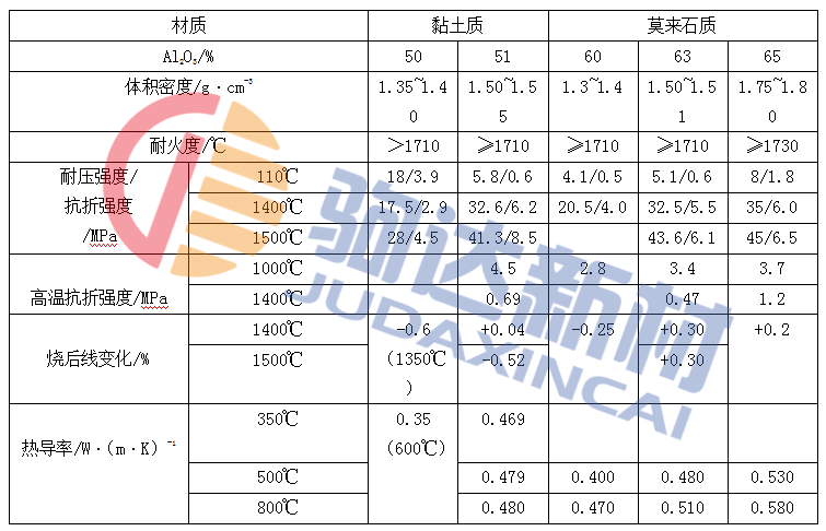 表1-4為高溫多孔熟料澆注料的性能。從表中看出,該類澆注料烘干強度介于上述兩類澆注料之間,1400~1500℃的強度相當高,幾乎與普通重質水泥耐火澆注料相同;1400℃燒后線變化呈膨脹態勢,1500℃時黏土質的略有收縮,而莫來石質的仍為+0.4%;耐火度≥1710℃,熱導率約為0.5W(m·K)。因此,該類澆注料能在軋鋼工業爐等熱工設備上使用,壽命較長,節能效果較好,應大力推廣。